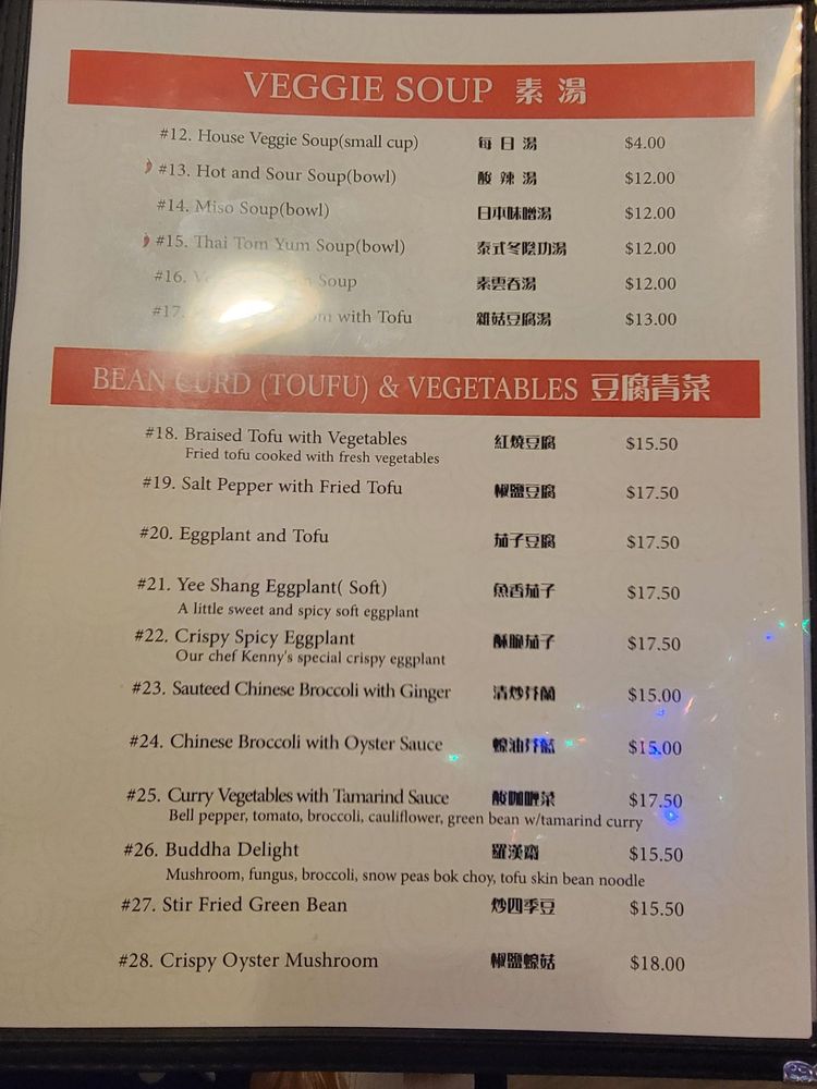 Chef Kenny’s Vegan Dim Sum Menu